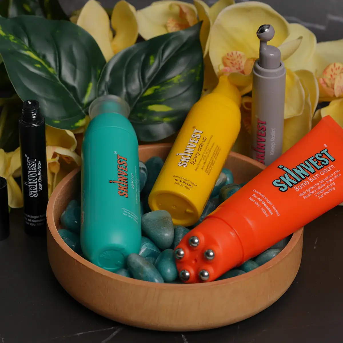 Brown skin is overlooked by the beauty industry despite the fact that it is more sensitive, prone to pigmentation and needs special attention and care. Moreover, Indian youth and millennials need a brand that caters to their unique skincare concerns such as pigmentation, cellulite, dark circles and eyelash growth. Skinvest bridges this gap with innovative products that answer these concerns while focusing on gender neutrality and mental health advocacy. We are setting revolutionary new standards by providing effective, clinically proven, dermatologist formulated, high quality, innovative, fun to use, cruelty free, vegan, and clean skincare in India.